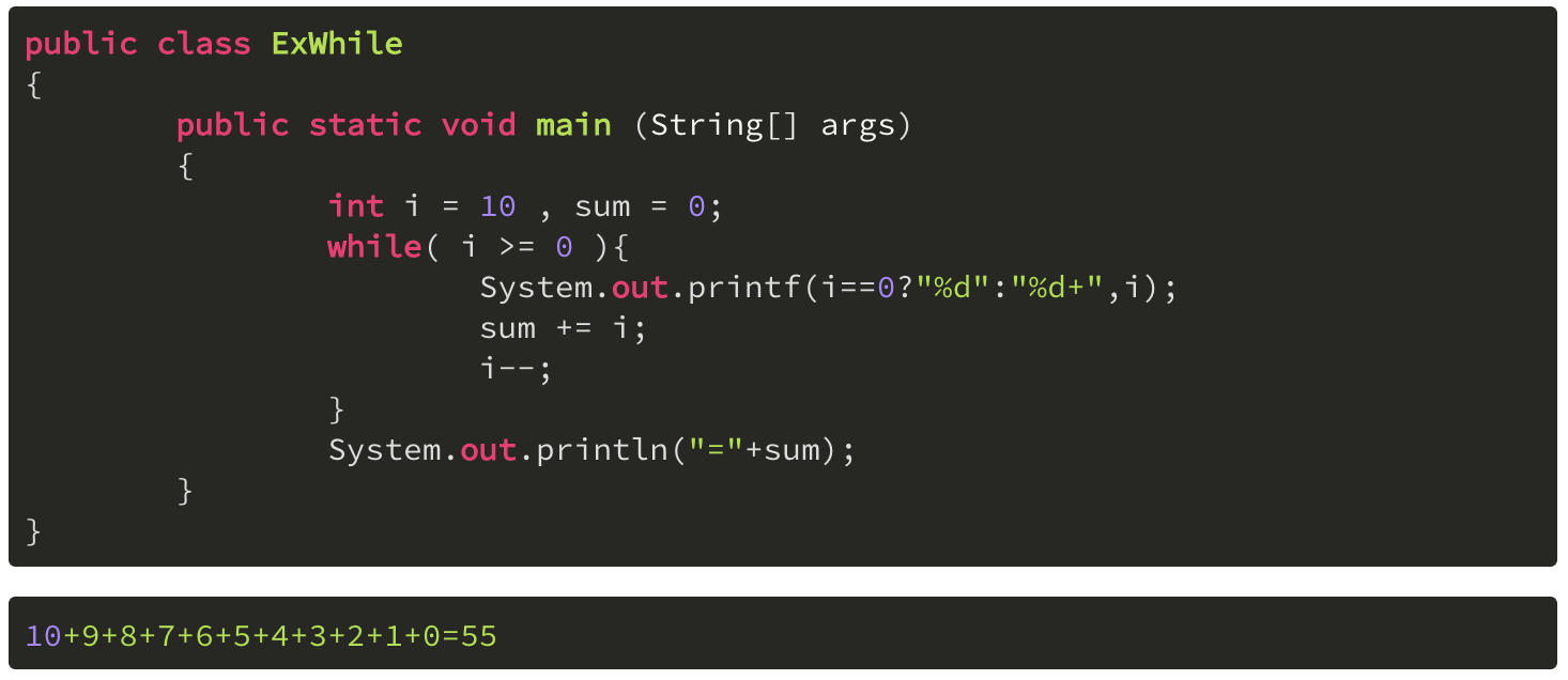 - 선언 형식: while(조건식) { 실행할 명령 }